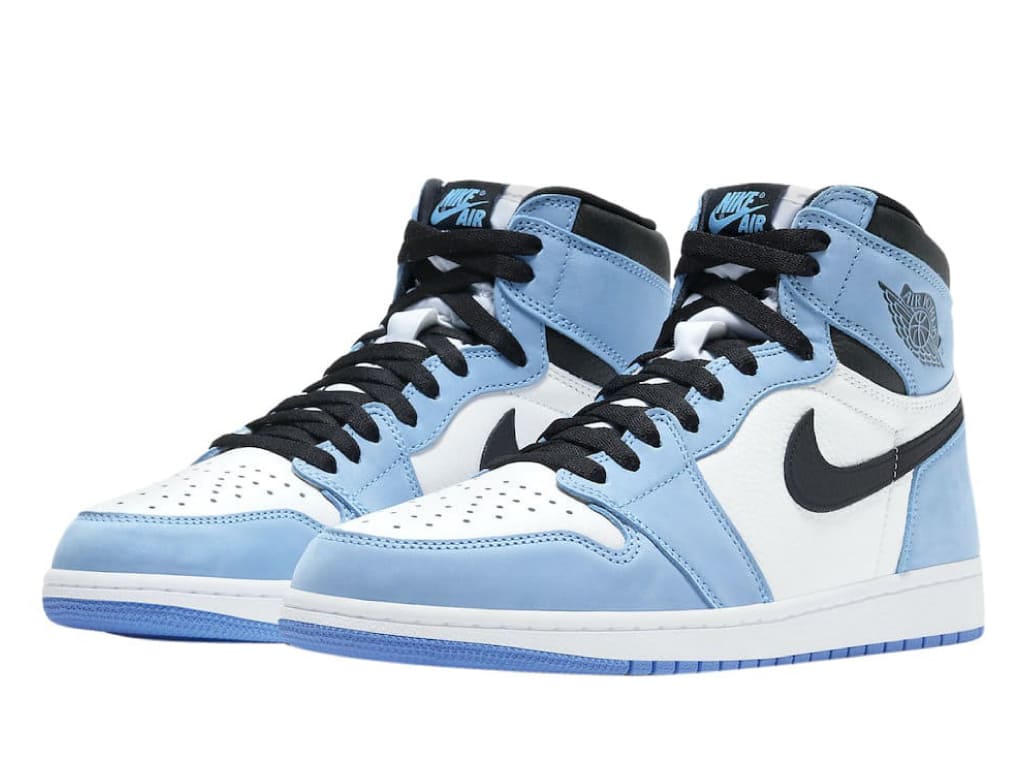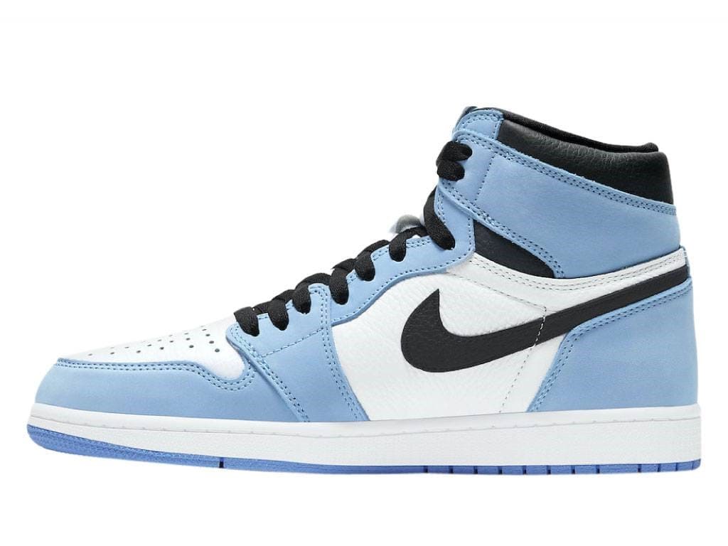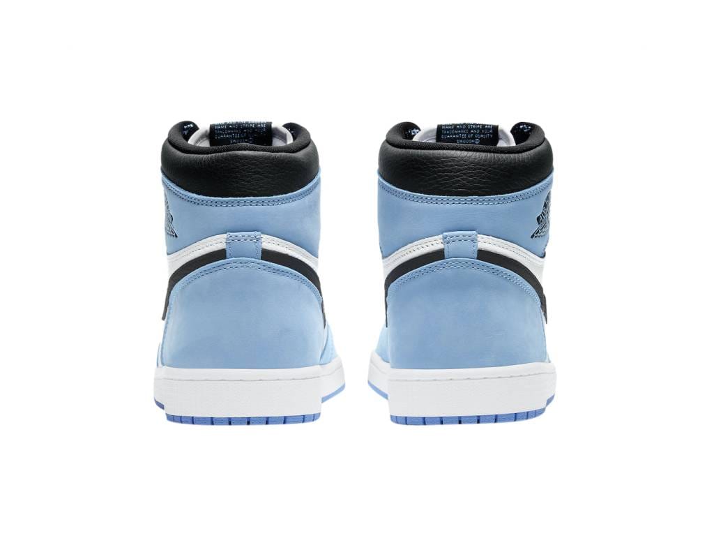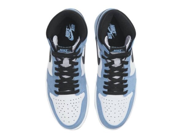 The upper of the Air Jordan 1 High University Blue is composed of a white and black tumbled leather upper with University Blue Durabuck overlays. Following traditional Jordan 1 detailing, a Nike Air woven label is located on the tongue and an Air Jordan Wings Logo is printed on the ankle. A white midsole and University Blue outsole complete rejuvenated classic.