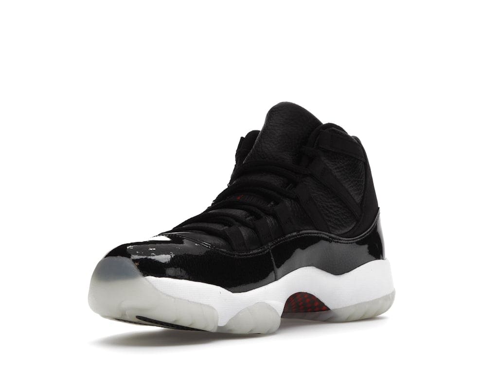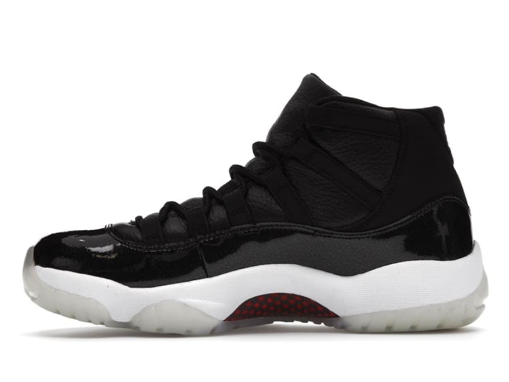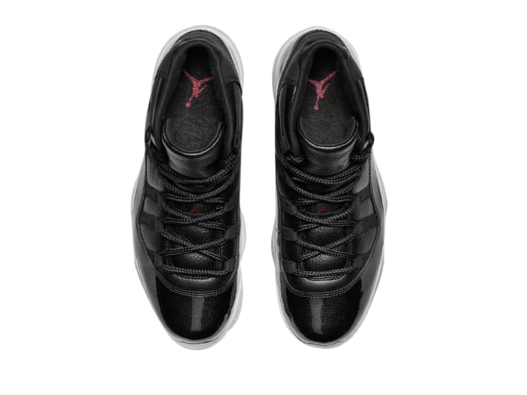 This Retro 72 10 features a premium tumbled leather upper with microfiber suede and patent leather overlays. The design also includes a red and black carbon fiber shank plate. A gym red Jumpman logo appears at the heel and tongue, and the sneaker sits atop a white Phylon midsole, with full-length Air-sole cushioning, and on a translucent rubber outsole.