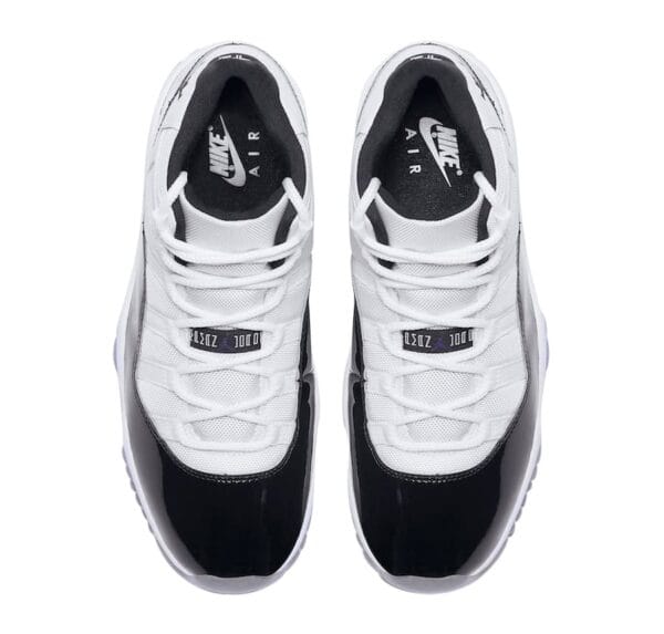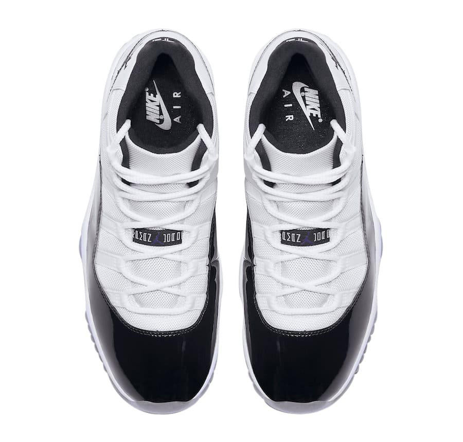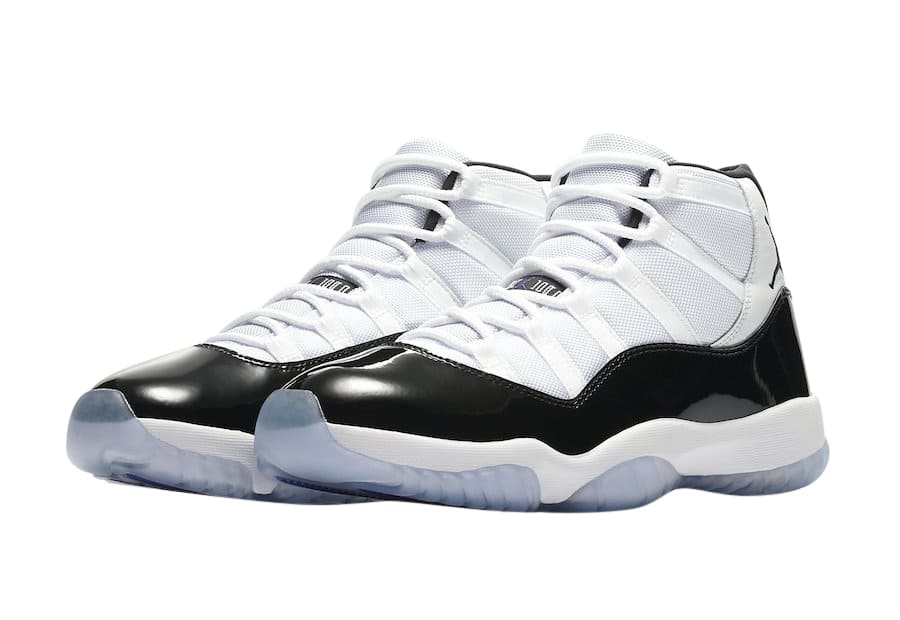 Jordan Brand is reaching harder than MJ on Space Jam for the sneaker of the year crown by releasing the Jordan 11 Retro Concord (2018). This Iconic Jordan 11 colorway is showcasing a white upper with black accents, white midsole, and a freezing cold translucent sole.