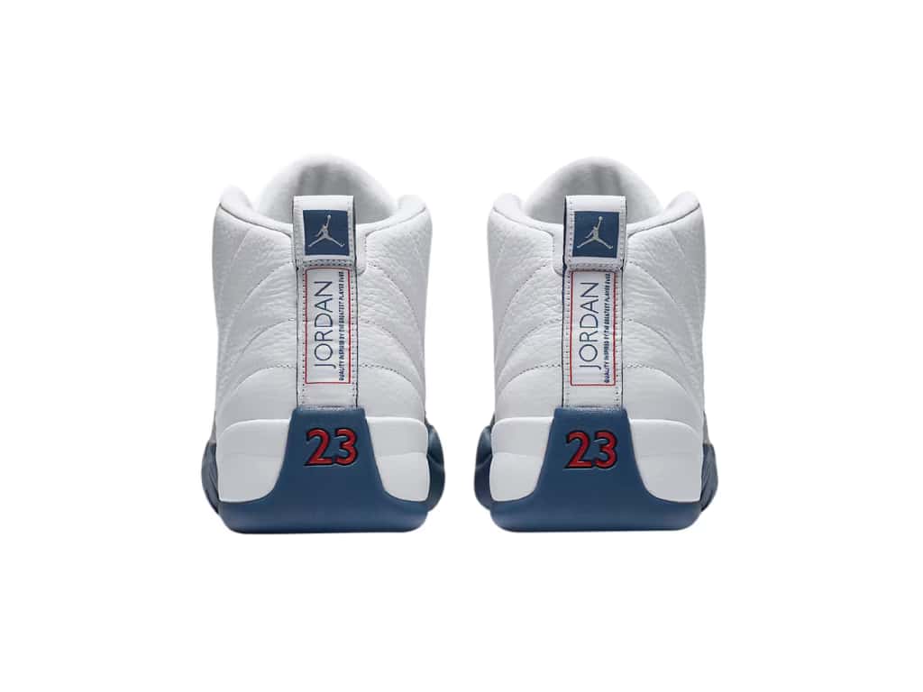 This 2016 Retro Air Jordan 12 features a French blue-colored mudguard on its white-tumbled leather upper. This sneaker boasts Jumpman printing on the left side of the right shoe and on the right side of the right shoe. There also features Michael Jordan’s jersey number at the back as well as beneath its outsole.
