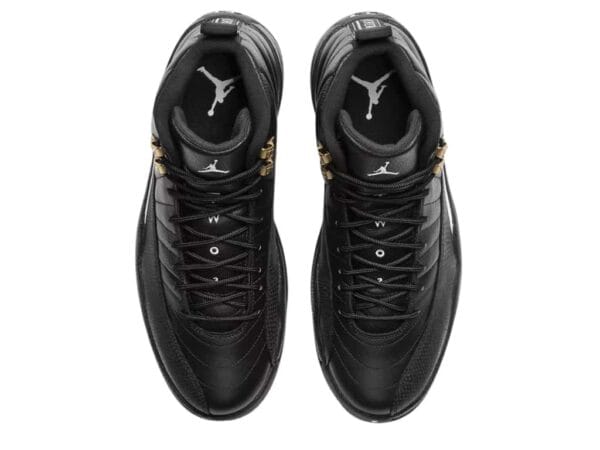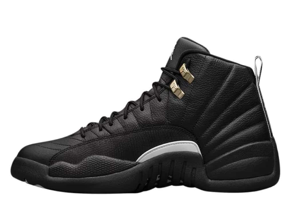 This retro Air Jordan 12 has a color palette that combines black, rattan-white and metallic gold. The sneaker has a black leather upper with metallic gold eyelets and white accents. Underneath the shoe, there is a Michael Jordan emblem. For branding, the model also has a Jumpman logo on the side as well as the number ‘23’ on the heel.