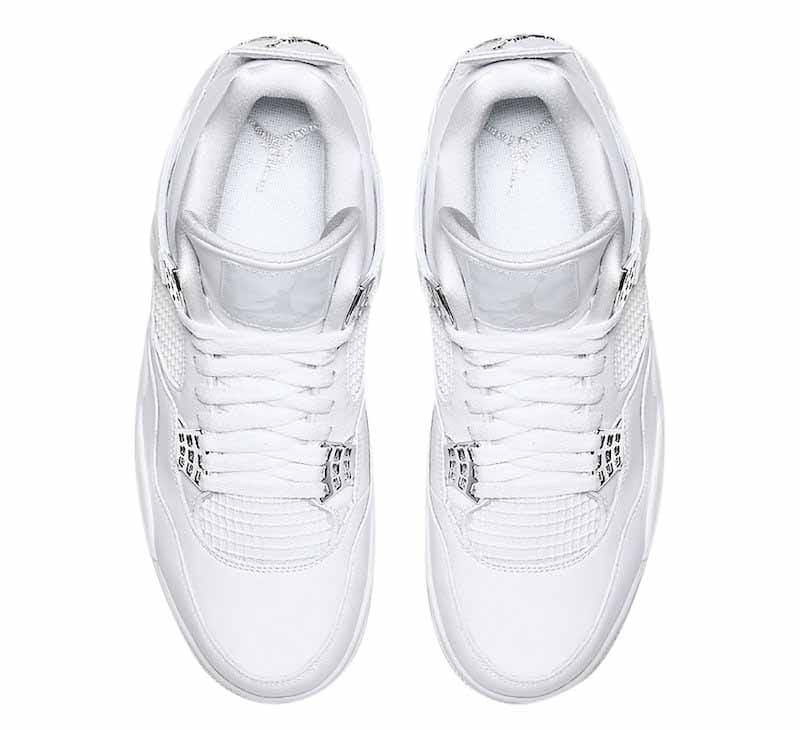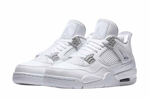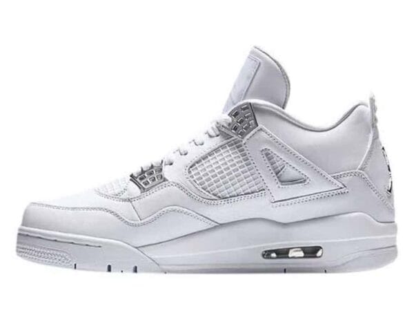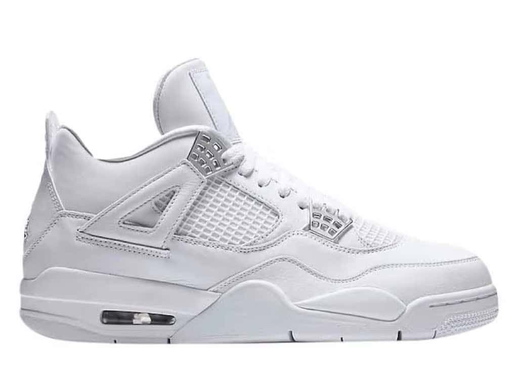 The Jordan 4 Retro Pure Money (2017) refreshes the Air Jordan 4 with pure, brilliant white. In May 2017, this silhouette was the latest in a series of Air Jordan 4 releases. This sneaker resembles the 2005 Pure Money with a few touch-ups, like chrome eyelets.