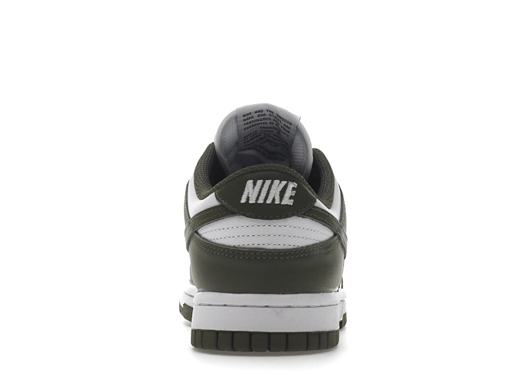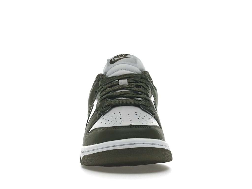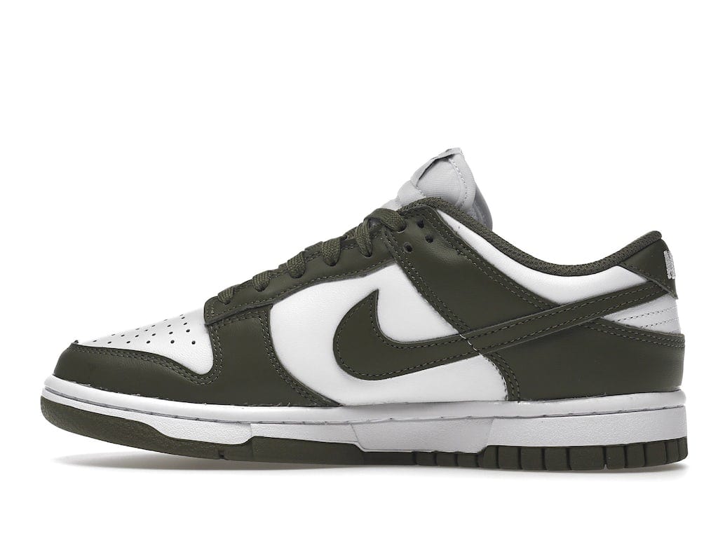 The all-leather upper of this Dunk Low Medium for women by Nike merges a crisp white base with olive green overlays and a color-matched Swoosh. Underpinning the sneaker is a traditional rubber cupsole, featuring white sidewalls that contain a lightweight foam wedge for cushion. Underfoot, the olive rubber outsole includes the brand´s herringbone traction pattern that rounds off the silhouette.