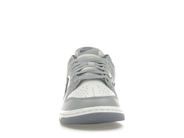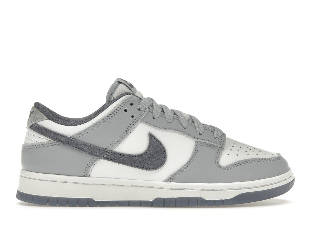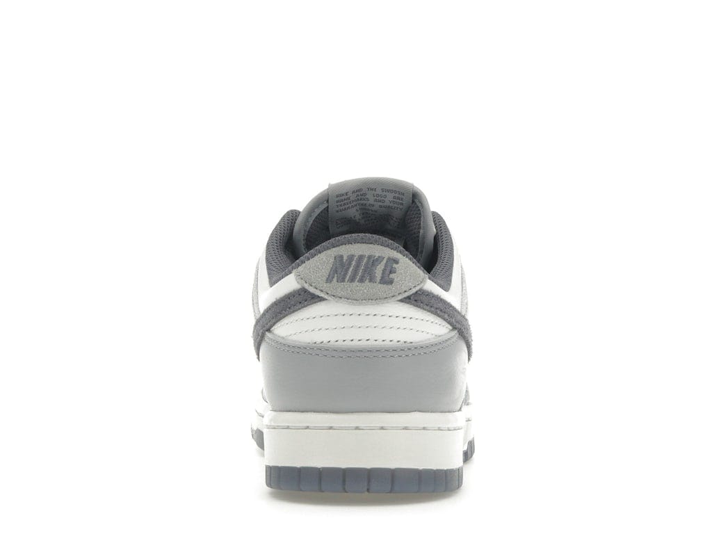 The upper is made of white leather with Light Carbon overlays that create a subtle color-blocking effect. The leather is designed to soften over time, which contributes to the sneaker’s vintage appearance. Due to its padded collar and low-top design, the sneaker resembles a skateboarding shoe. It boasts a foam midsole with responsive cushioning and a rubber outsole with Nike’s signature pivot hoops pattern. This design allows the sneaker to grip the ground, improving traction without sacrificing durability.