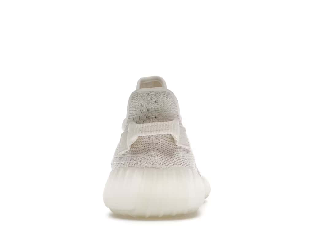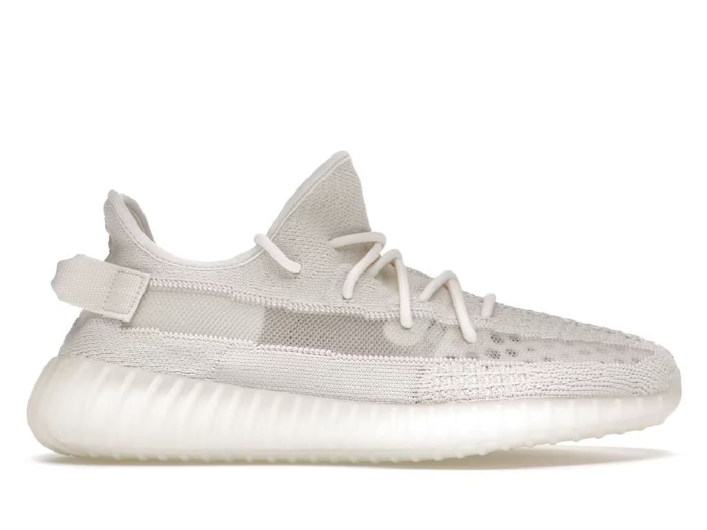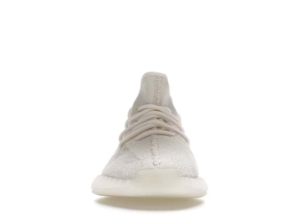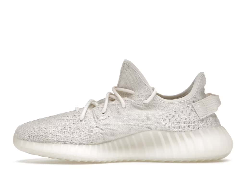 The adidas Yeezy Boost 350 V2 Bone features a triple white Primeknit upper with mesh side stripes and canvas heel tabs. At the base, a semi-translucent sole with Boost technology completes the design.