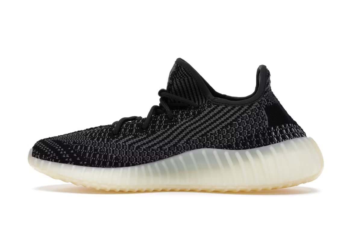 The Yeezy 350 V2 Carbon holds all of the familiar elements that make the silhouette so popular; breathable Primeknit solid black mesh with its signature side stripe, ribbed patterned off-white midsole, and classic BOOST cushioning make the 350 V2 Carbon easy to love and easy to wear.