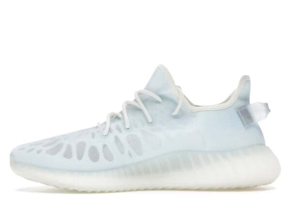 The adidas Yeezy 350 V2 Mono Ice is one of three from the Mono pack. Each sneaker’s upper is constructed from a new monofilament mesh in Ice blue that exposes the model’s inner cage lining. The Mono pack brings back the heel’s pull tab design on each pair. To finish it out, a familiar Boost sole is added for comfort for the wearer.