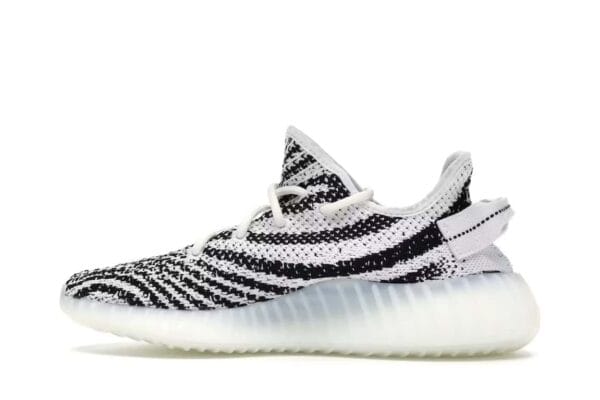 Debuted in 2017 the adidas Yeezy Boost 350 V2 Zebra is known as one of the most renowned colorways in the Yeezy line. It features a white and black marbled Primeknit upper with a white side-stripe and red “SPLY-350” text. At the base a cushioned Boost sole provides comfort and support.
